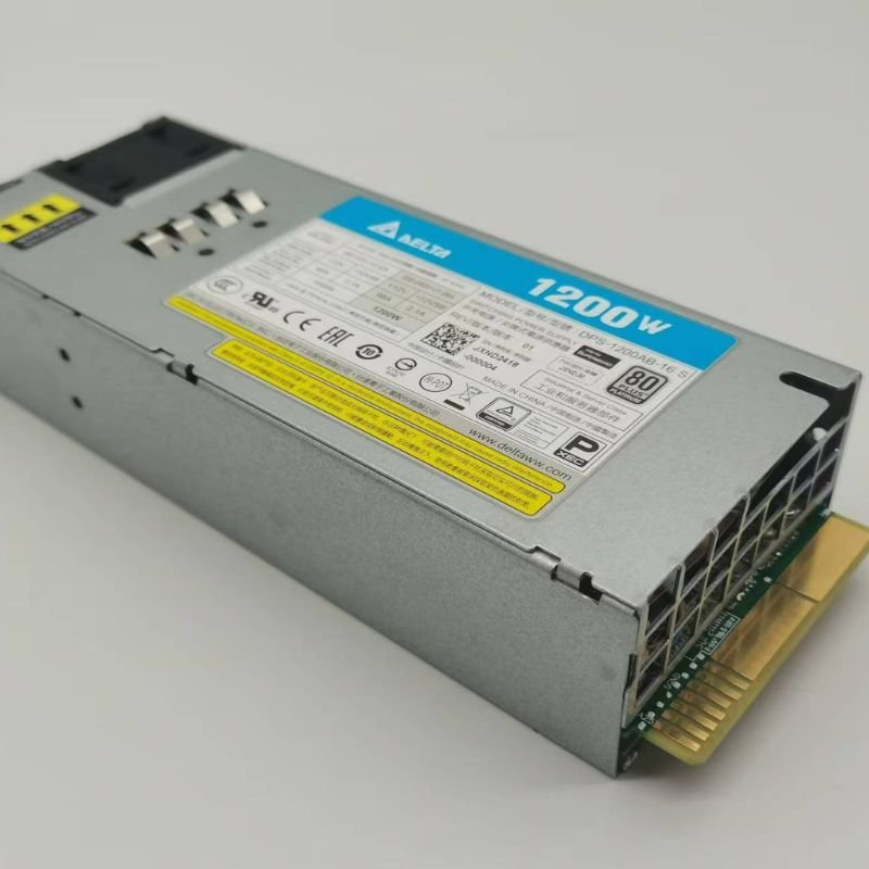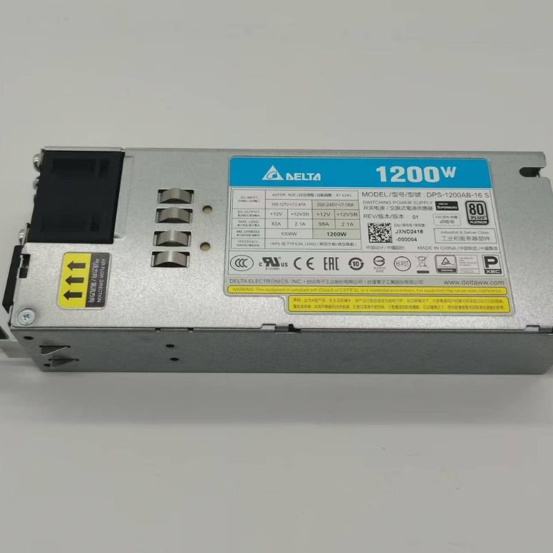 The 1200AB-16B is a high-efficiency 1200W redundant power supply manufactured by Delta Electronics, specifically designed for server systems. This power supply features automatic input voltage regulation and power factor correction, ensuring stable operation in various power grid environments. Its design optimizes power loss across the entire load range and is acoustically optimized for low noise levels.