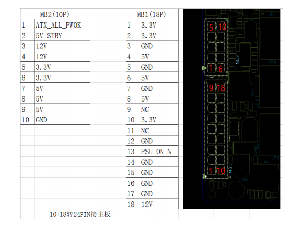 1x MINI FIT 2×5 + 1x MINI FIT 2×9 (for ATX 24PIN conversion)