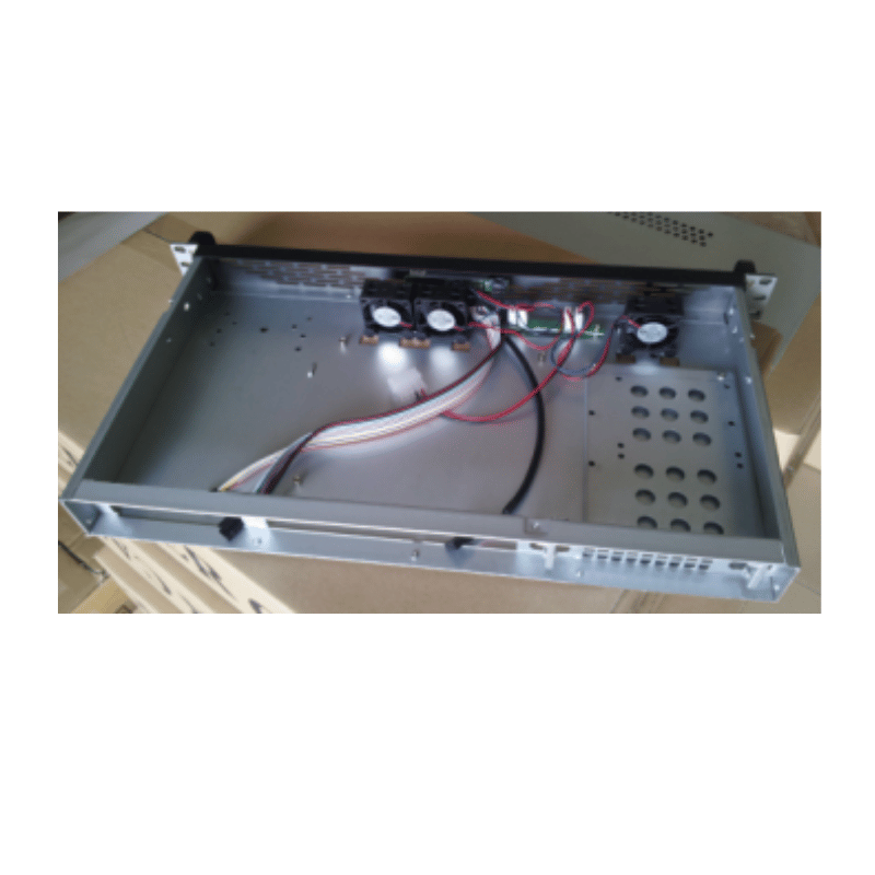 This 1U server chassis measures D250xW350xH44mm and is designed for compact servers. It supports a non-hot-swap configuration with the option to install either 1x 3.5″ HDD or 2x 2.5″ HDDs. The chassis is compatible with 6.7″x6.7″ motherboards and supports 1U flex power supplies or power adapters. Cooling is provided by up to 3 optional 4025 fans. Constructed from 1.4mm thick SECC and SGCC steel, this chassis offers enhanced durability and stability.