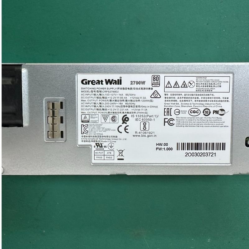 To ensure safe operation under extreme conditions, the CRPS2700D2 incorporates multiple protection mechanisms, including Over Current Protection (OCP), Over Voltage Protection (OVP), and Over Temperature Protection (OTP). These protection features effectively prevent damage to the devices in case of abnormal situations, providing users with additional safety assurance. Moreover, the power supply supports fault self-checking functions, which can issue alerts in case of failures, helping users respond promptly.